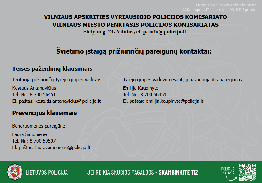 Vilniaus šv. jono Pauliaus II gimnaziją prižiūri policijos komisariato pareigūnai